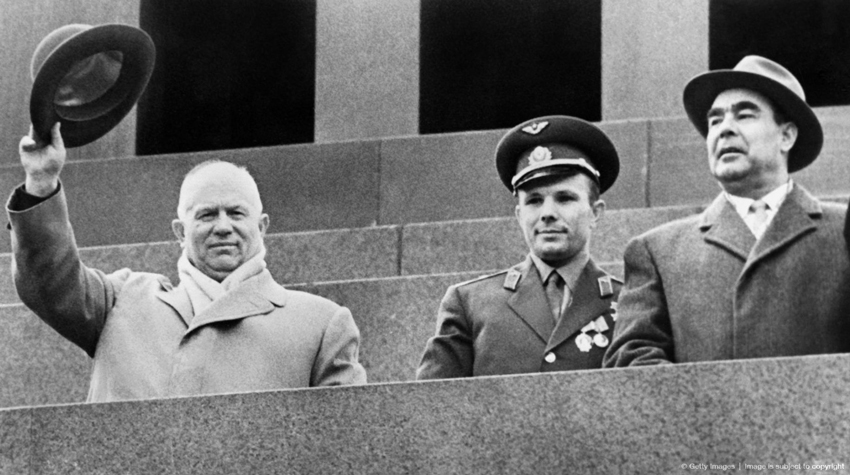 In 1964, the Soviet leader Khrushchev (far left) was replaced by Leonid Brezhnev (far right)