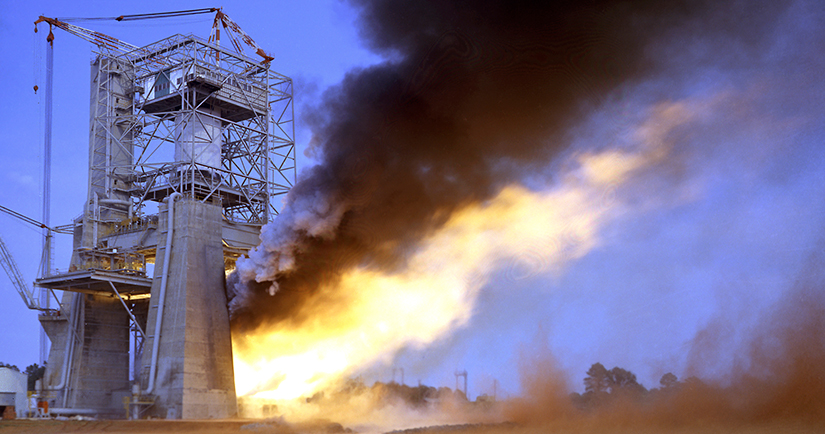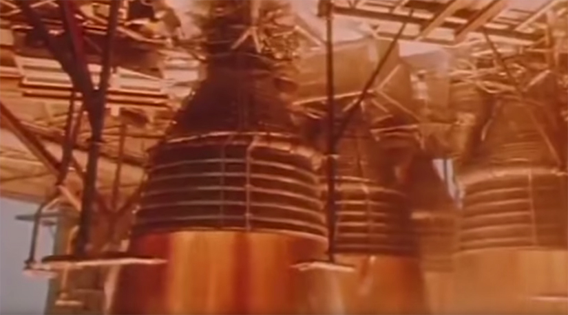 The photo above shows a “cluster test” of all five F-1 engines of the Saturn V first stage. Together, the powerful engines would produce 7.6 million pounds of thrust at launch. The Americans had their big engines, but the Soviets had something the Americans had not yet developed…