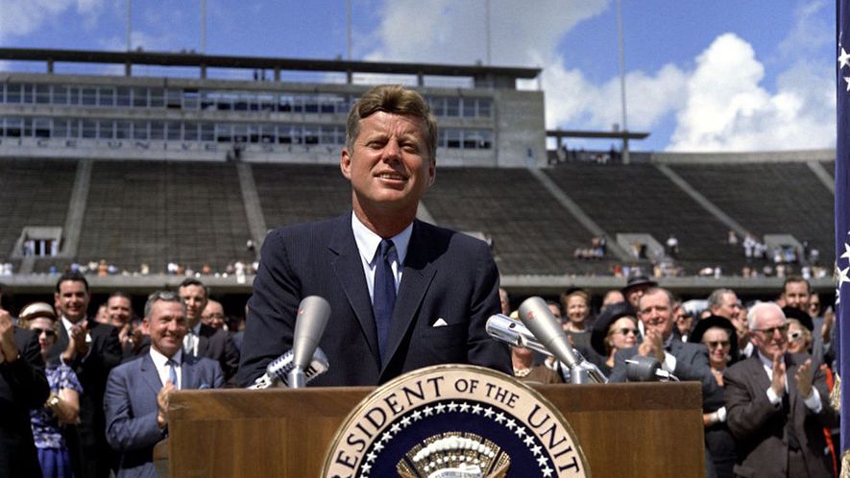 On September 12, 1962, U.S. President John F. Kennedy delivered the famous “We choose to go to the Moon” speech to a large crowd gathered at Rice Stadium in Houston. The speech was intended to persuade the American people to support the Apollo program, the national effort to land a man on the Moon.